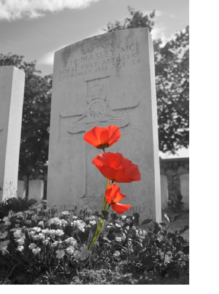 And so back to the village and on our final gathering together at Captain John Hamon Massey’s grave at the Jonchery War Cemetery. We all arrived ahead of John and his family and immediately he noted three poppies, which someone of our party had so wonderfully picked and placed before the headstone. John then, still wearing his Gunner badged blazer and beret, stood in front of the grave and, unscripted, spoke directly to his uncle words of gratitude – for all of us I think – for the ultimate sacrifice he gave ... for his country ... and the example for his comrades in 5th battery. Is that what you heard John say or were emotions clouding my thoughts?